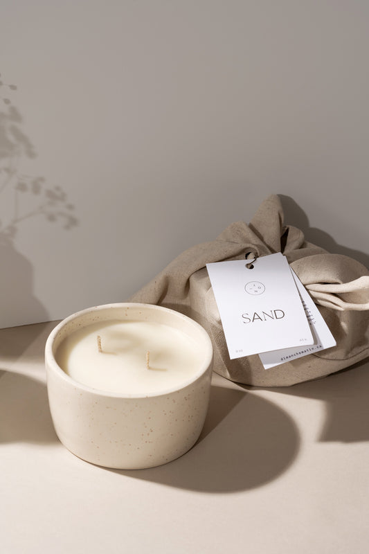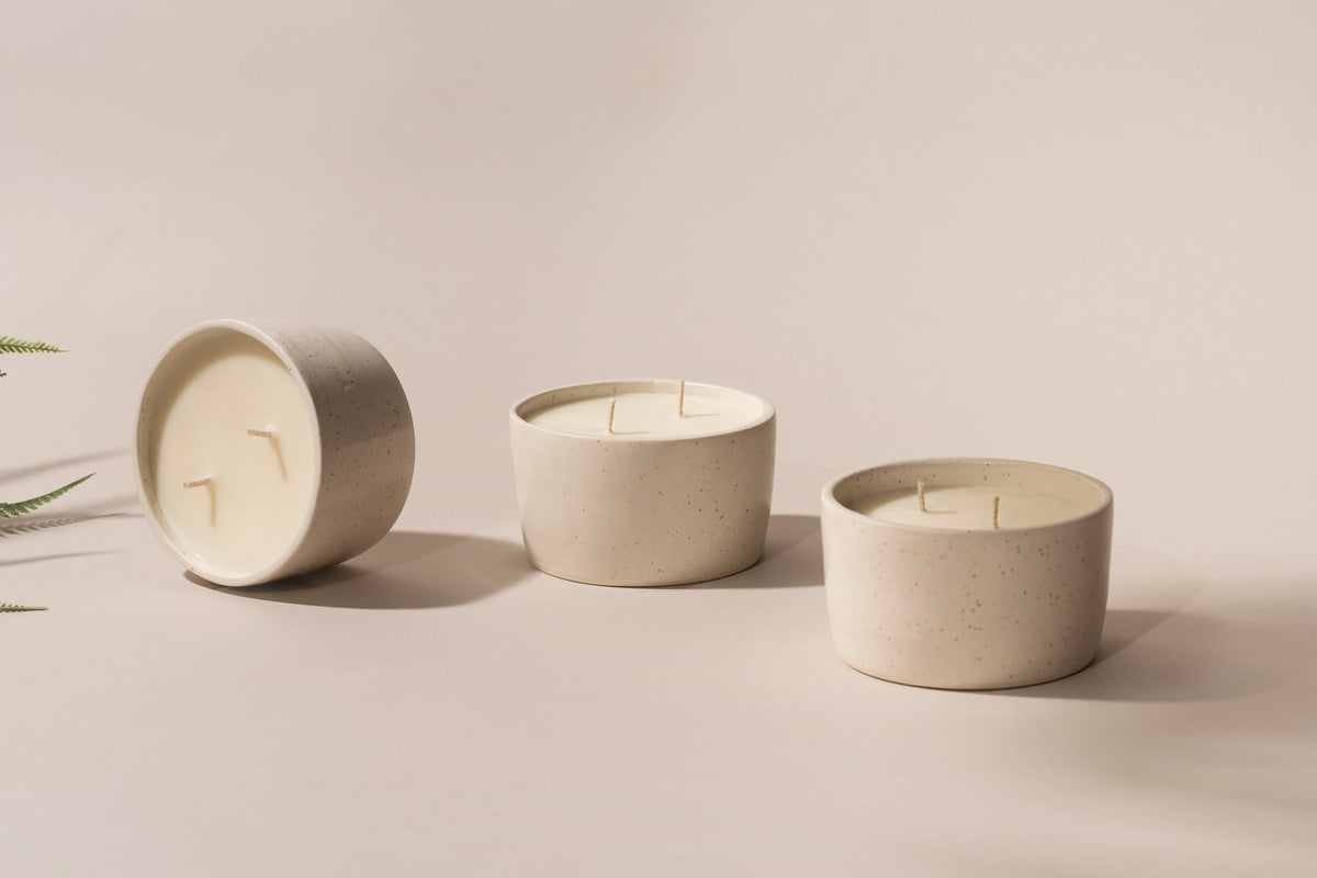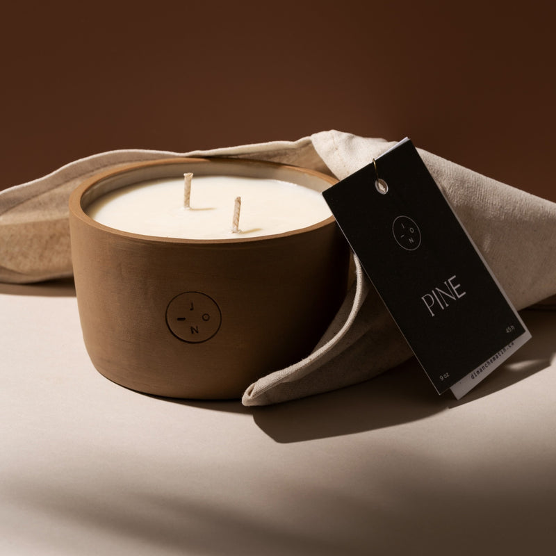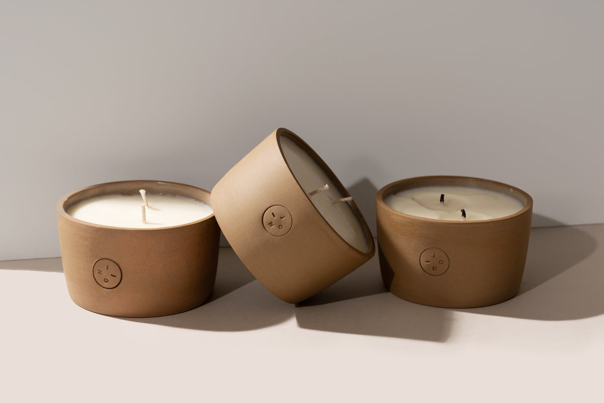Douce collection pour dimanche matin, pots à chandelle aux couleurs naturelles s'agençant aux subtils parfums de JONI.